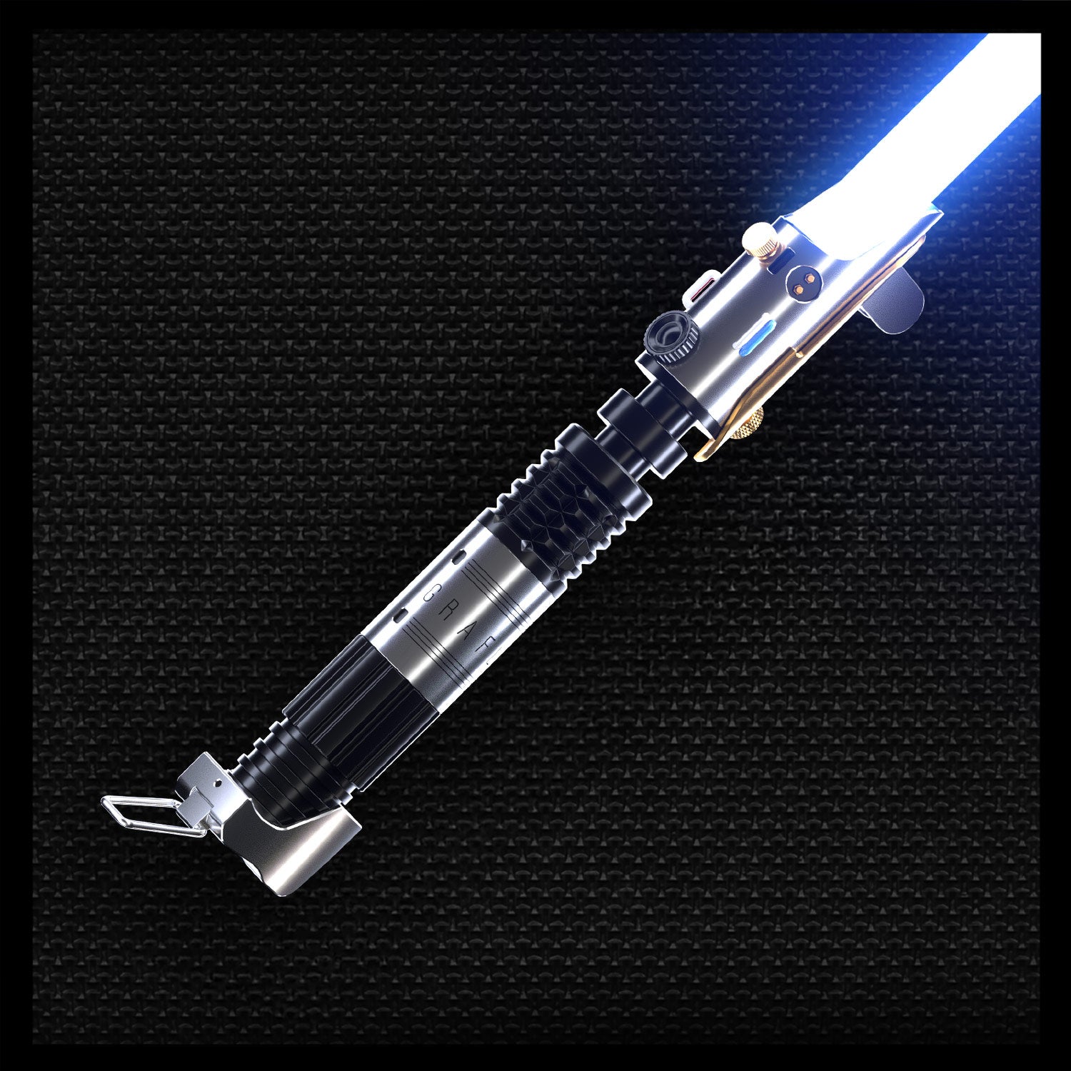 Built like a kit-bash from the galaxy’s most famous designs, Unity blends classic cues into one cohesive saber. Think flashgun-style “bunny-ear” shroud and control cluster, a Hermit/Negotiator-inspired thin-neck with ribbed midsection, and a T-track lower grip—all tied together with striking gold hardware. It looks (and feels) like a warrior scrapped together the best parts from legendary hilts to make one destined companion.